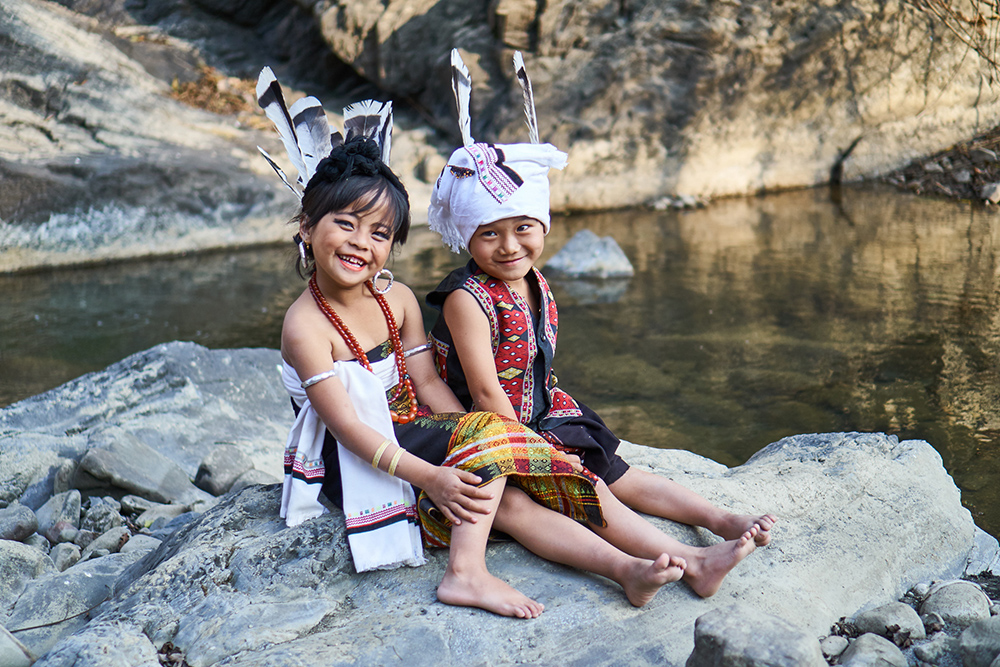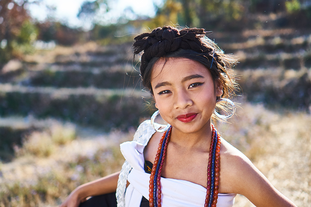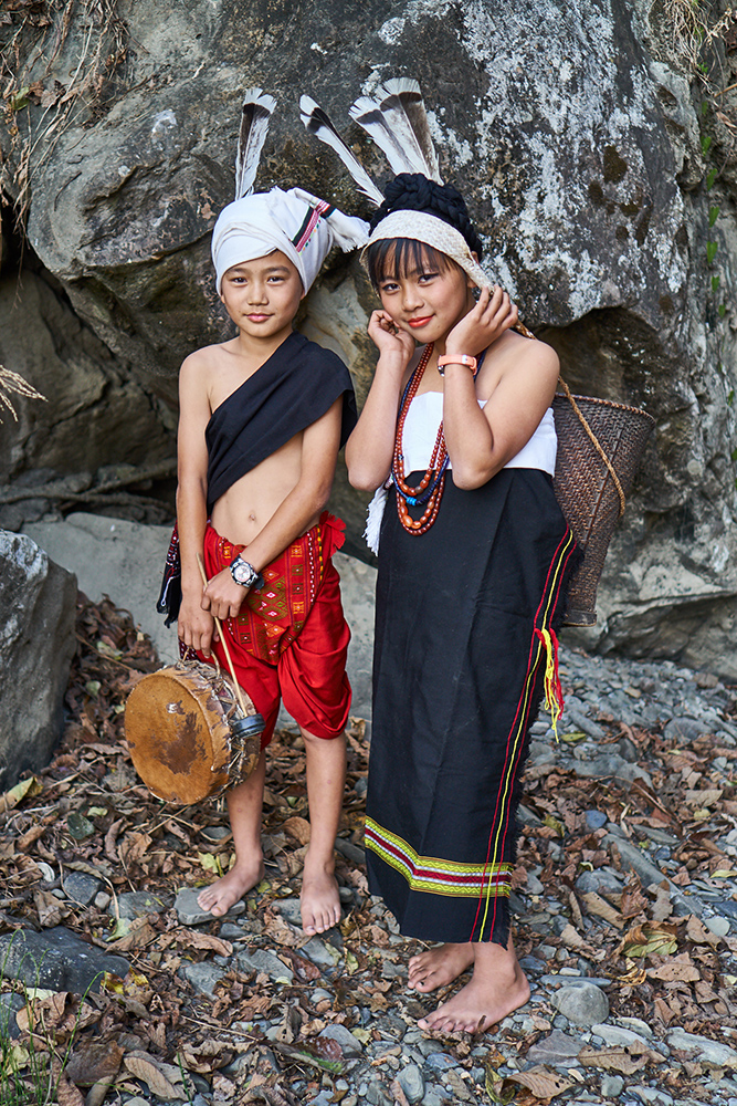 Children portrait photography in traditonal Kuki attire. The Kuki people constitute one of several hill tribes in Northeast India and Myanmar (Burma).